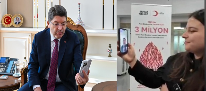 Adalet Bakanımız Sayın Yılmaz Tunç, Türk Kızılay’ın, bu yıl 3 milyonuncu ünitenin kan bağışçısı olan İslahiye Adliyesi zabıt katibi Büşra Tokgöz’ü görüntülü arayarak tebrik etti.